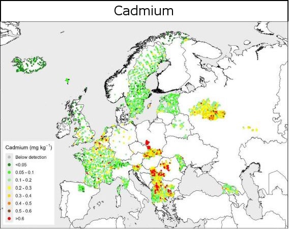 Cadmium gelangt vor allem durch die Verwendung von Kunstdünger und die Verbrennung von Müll und fossilen Brennstoffen in die Umwelt. Auch Industrie und Baugewerbe sowie Hausbrand können die Cadmium-Emissionen beeinflussen. Cadmium reichert sich in fast allen Lebewesen an und wirkt toxisch.