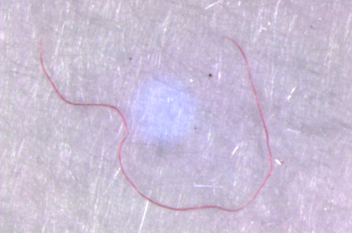 - Weiße oder transparente Partikel müssen, um einen biologischen Ursprung ausschließen zu können, bei hoher Vergrößerung unter einem Fluoreszenzmikroskop untersucht werden