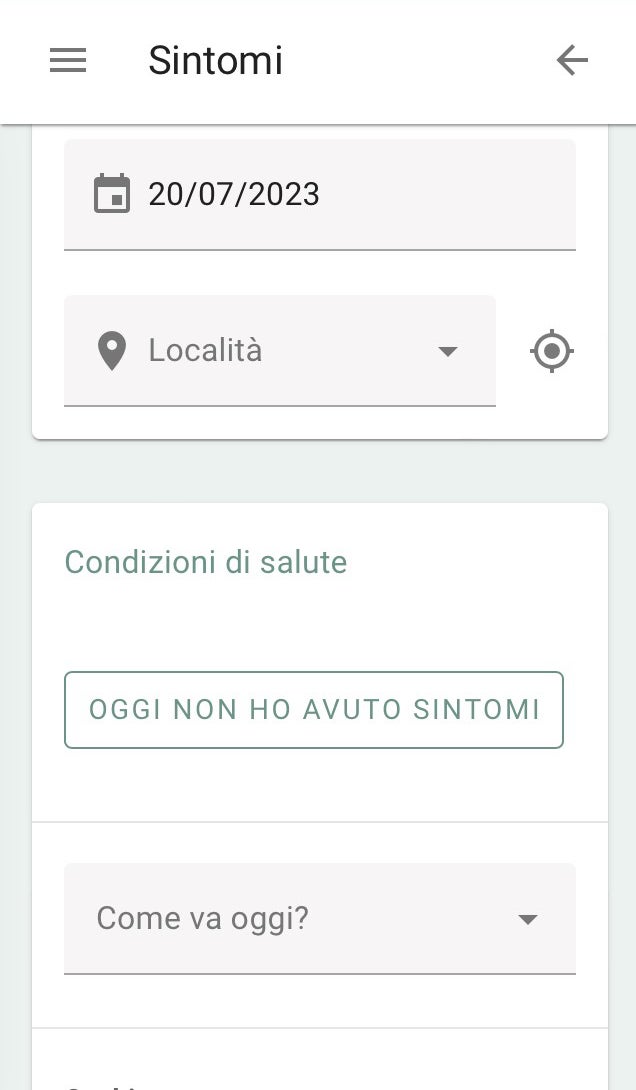 - un questionario sulle allergie (vedasi menù "impostazioni")