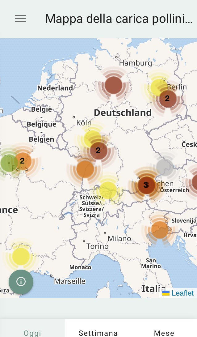 Pollen+ app è gratuita e informa sulla carica pollinica del giorno e dei due giorni successivi.