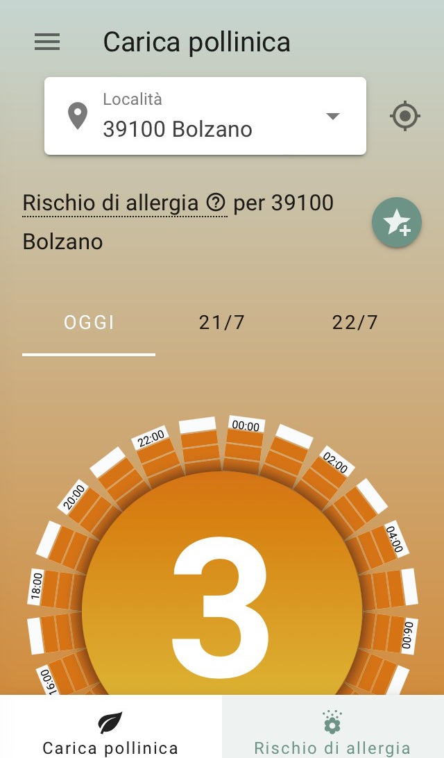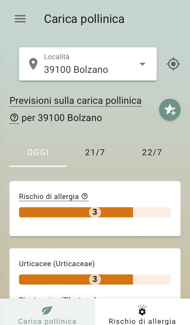 Pollen+ app offre previsioni sul volo pollinico per Austria, Germania, Svizzera e Svezia. Il Laboratorio biologico dell’Agenzia per l’ambiente, in stretta collaborazione con il gruppo di ricerca “Aerobiologia e informazione pollinica” dell’Università di Medicina di Vienna, ha esteso il servizio e fornisce le previsioni giornaliere sul volo pollinico per l’Alto Adige.